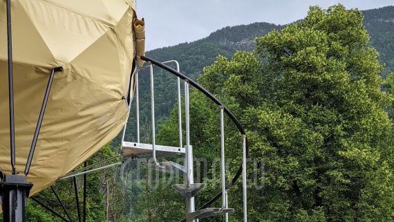 The “VIP Dome” features integrated LED lighting and a ventilation system that ensures comfort throughout the year. This spatial structure is versatile, capable of hosting a wide range of events, from weddings to business meetings, providing a unique atmosphere and unmatched aesthetics harmoniously aligned with the natural beauty of its surroundings.