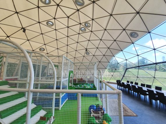 The “VIP Dome” project in Liutonys, Lithuania, is a distinctive and exclusive space designed for events, conferences, and other special occasions. The dome itself covers an area of 254 square meters, complemented by a VIP loft space of 100 square meters. Nestled in the picturesque Degučiai Valley, this modern structure is built using cutting-edge technology, offering a sense of luxury and elegance.