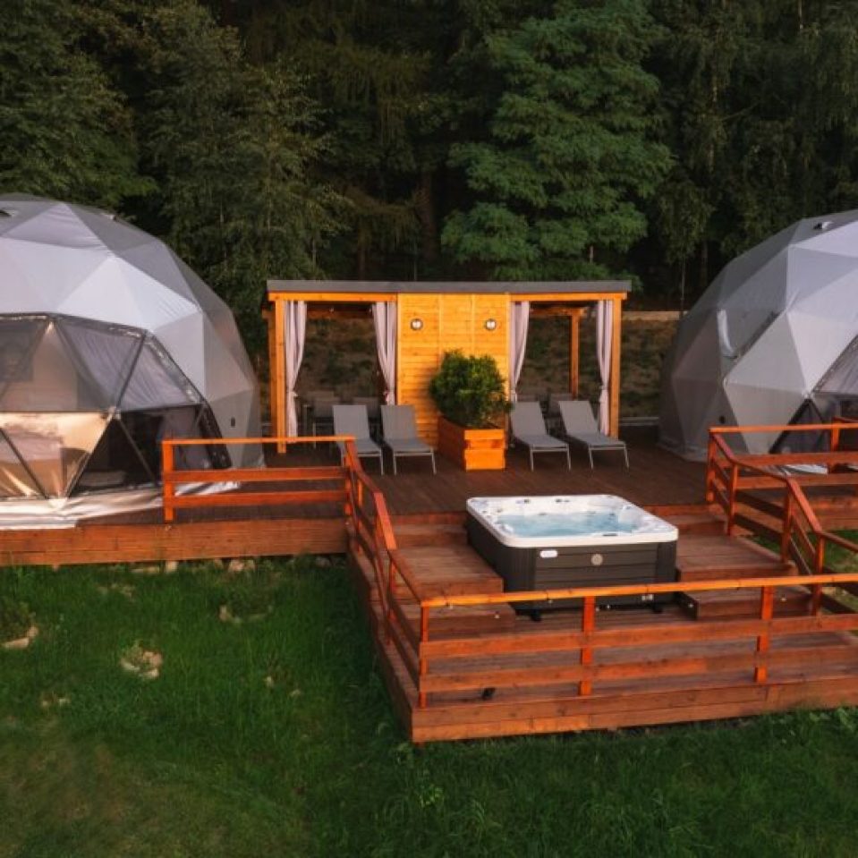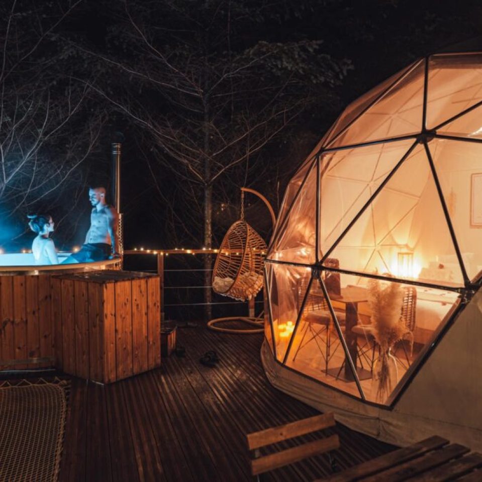 Our Panoramic series domes are designed to offer an exceptional all-season living experience with double-glazed glass panels, providing unmatched transparency and insulation. These domes are ideal for those looking to combine modern aesthetics with high functionality. The domes are equipped with high-end triangular double-glazed glass panels, also known as thermo packets, which provide superior thermal properties. These panels ensure that the interior remains warm and insulated, even in extreme weather conditions. The glass panels are designed with solar control properties, effectively managing the amount of sunlight that enters the dome. This helps in maintaining a comfortable interior temperature and protecting against UV rays. The one or double-glazed units offer excellent thermal insulation, reducing heat loss during winter and minimizing heat gain during summer. This ensures a stable and comfortable indoor environment throughout the year.