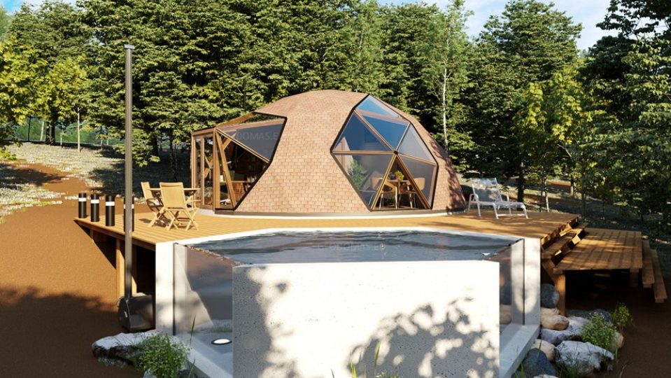 20m2 Sauna Dome Ø5m Geodesic Wooden Dome Height 3,5m