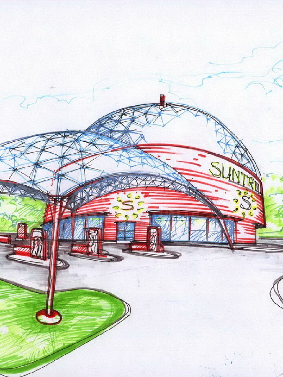 Our geodesic service stations incorporate cutting-edge parametric architecture, characterized by smooth, oval forms and a modern, futuristic design. These stations are not just functional; they also bring a unique aesthetic appeal to the locations they serve. Our conceptual solutions transform vehicle refueling stops into attractive and visually appealing spaces