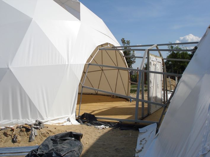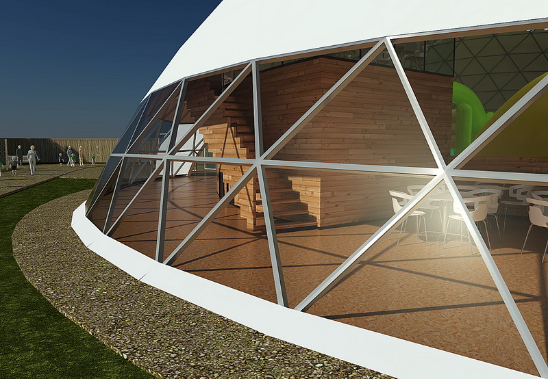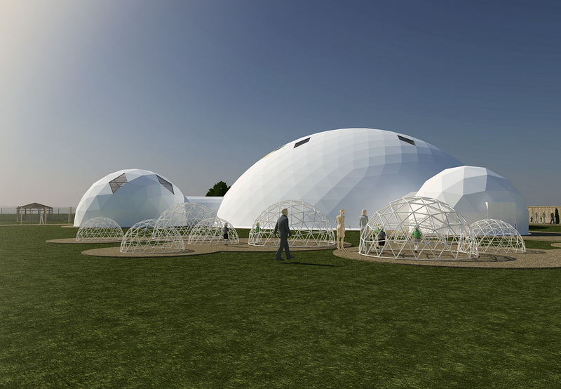 Projekte įgyvendinti trys geodeziniai kupolai – pagrindinis Ø34m kupolas su 707m² ploto erdve ir net 11 metrų aukščiu, jungiamas su Ø12m (113m²) edukaciniu kupolu bei Ø8m (50m²) pagalbiniu moduliu. Ši erdvinė kompozicija sukuria natūralų srautą tarp veiklų, vaikų edukacijos ir poilsio zonų.