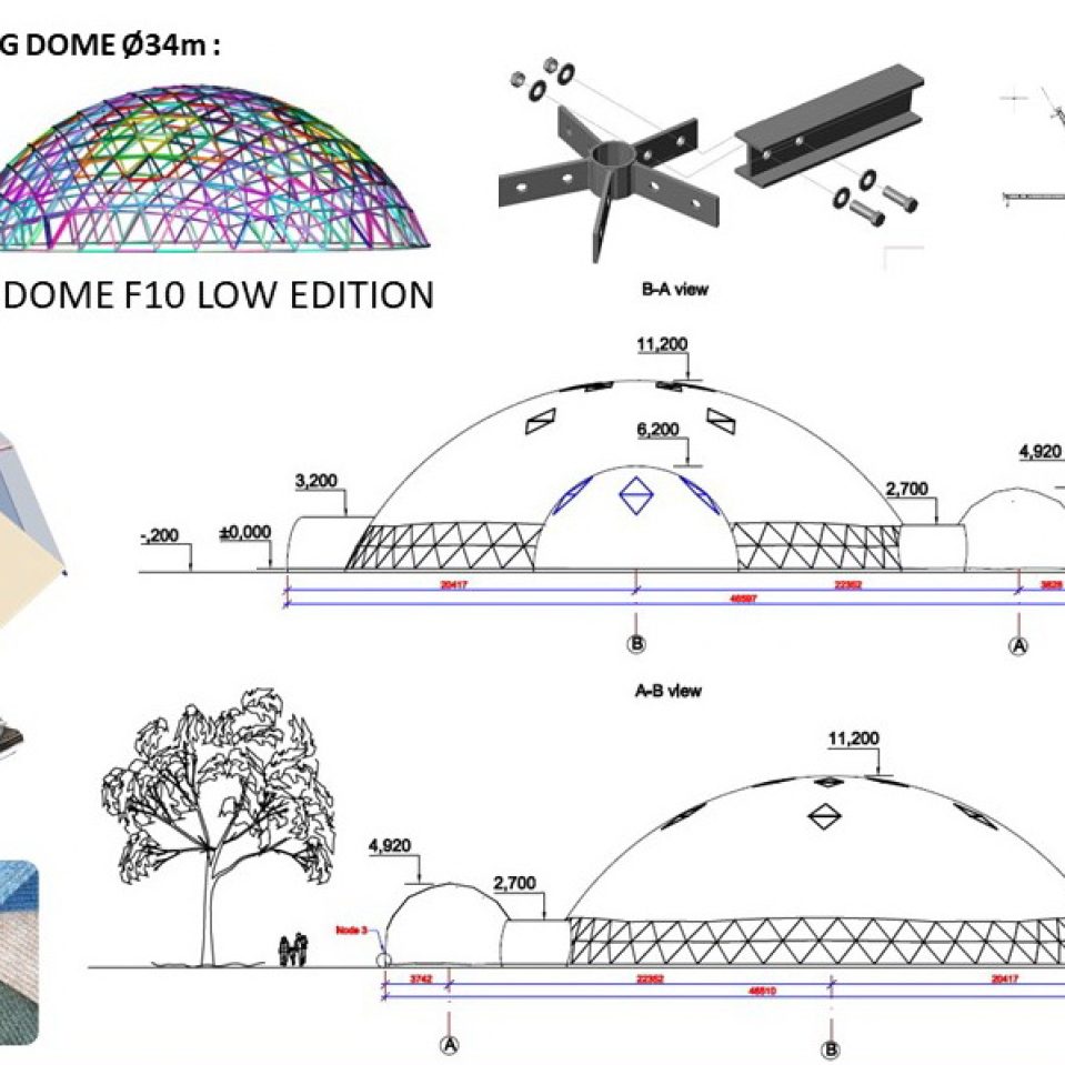 📏 Kupolų parametrai: Ø34m ; Ø12m ; Ø8m
