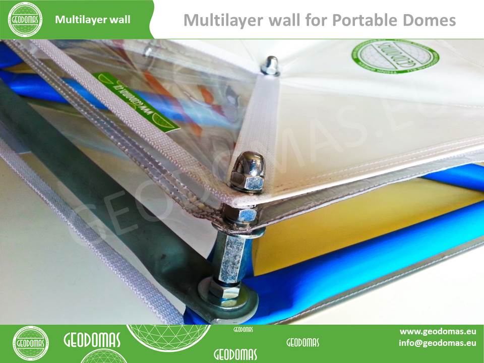 Kupolo konstrukcija sukurta iš cinkuoto plieno rėmo, kuris užtikrina mechaninį tvirtumą, ilgaamžiškumą ir atsparumą korozijai. Danga sudaryta iš 60 % PVC 720 gr/m² su skaidriais langais ir 30 % tronuoto paviršiaus, leidžiančio mėgautis gamtos vaizdais. Kupolas turi gravitacinę ir ZIP tipo ventiliaciją, kuri užtikrina oro cirkuliaciją ir komfortą bet kokiomis oro sąlygomis.