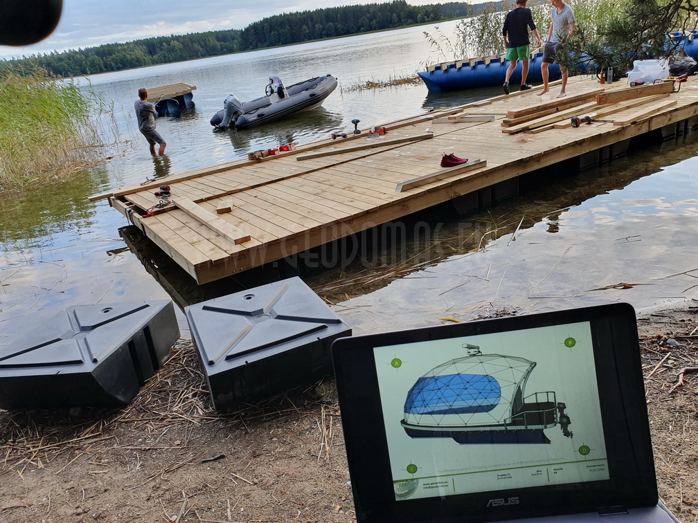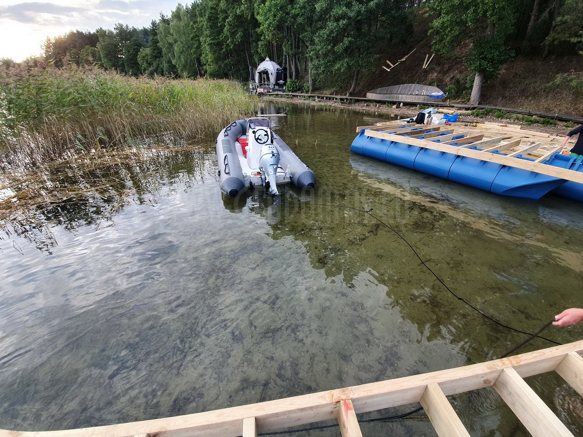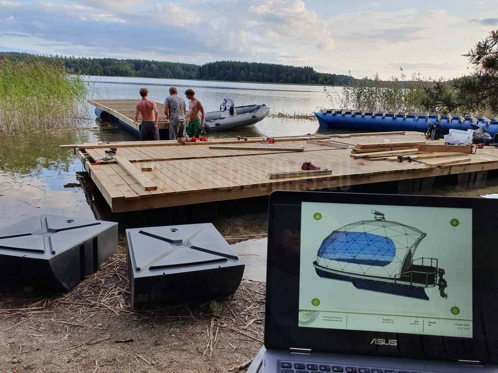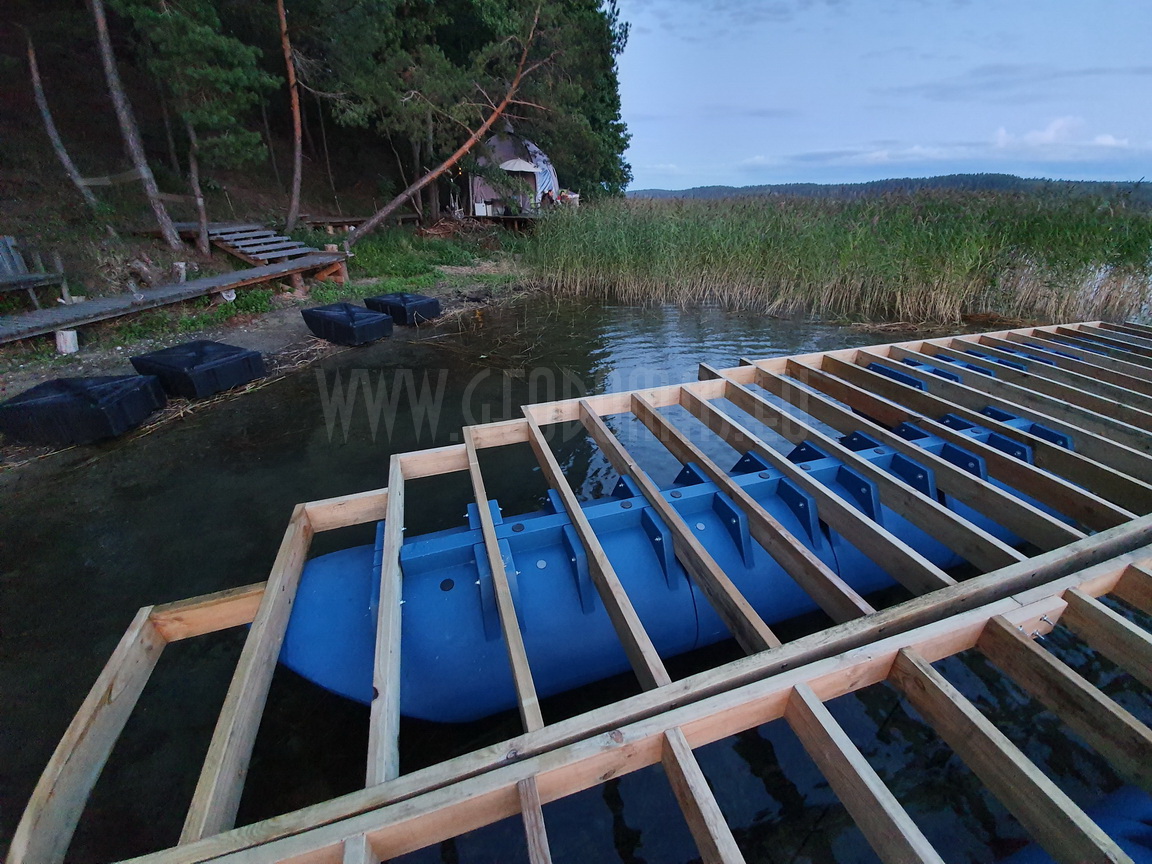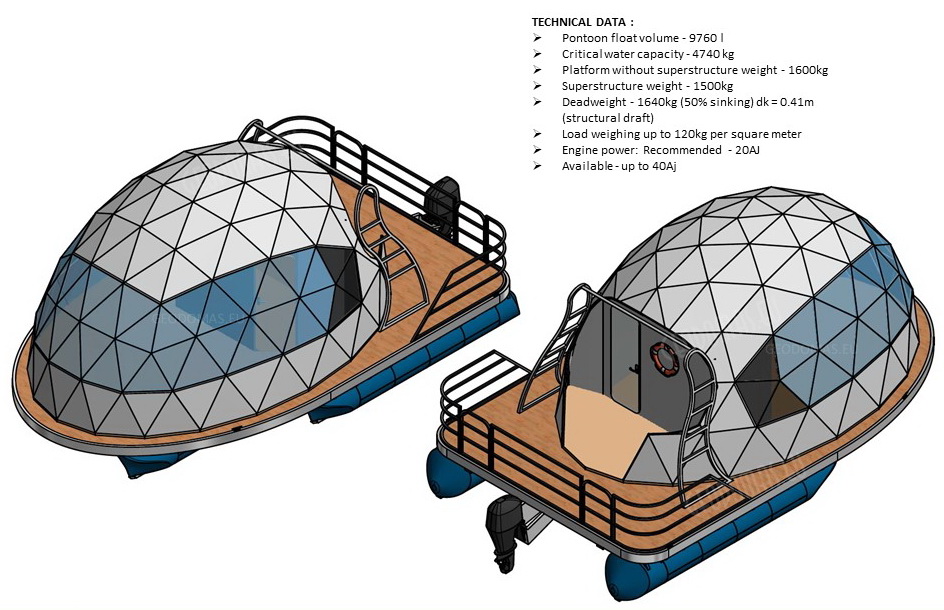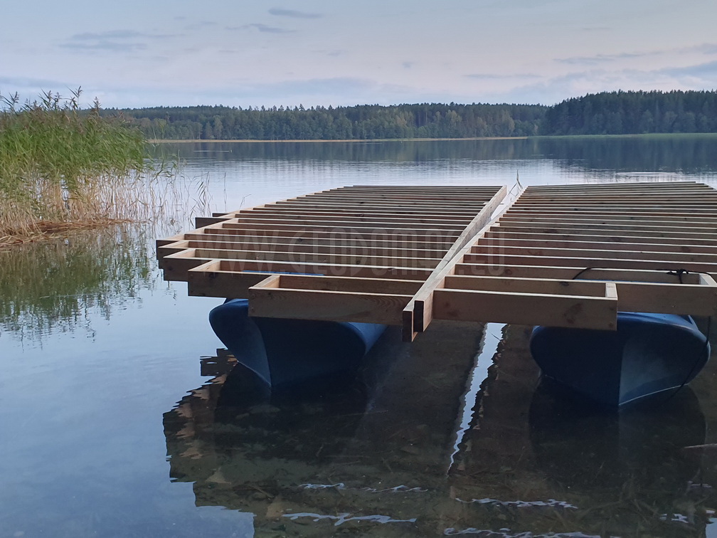Platformos plūdurai sudaryti iš 24 blokų, 4 segmentų su denio profilių konstrukcija, užtikrinant ne tik stabilumą, bet ir didelę keliamąją galią – net kritinė talpa siekia 4740 kg. Tai reiškia, kad platforma gali atlaikyti didelį svorį, įskaitant svečius, įrangą, papildomus elementus (pavyzdžiui, kubilą).