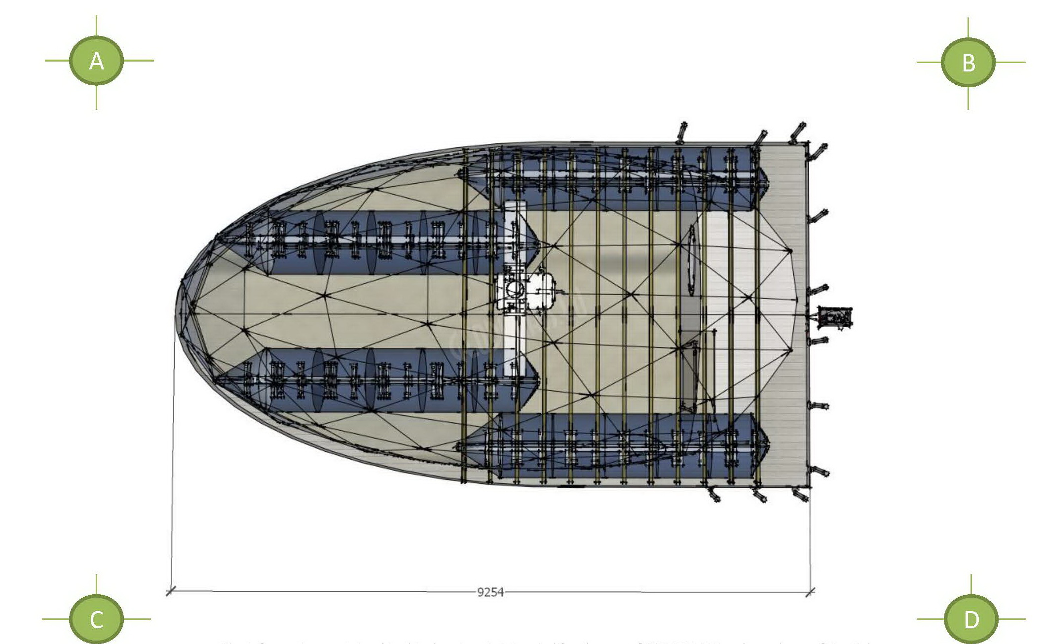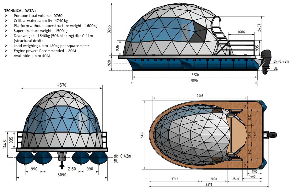 Be to, platformoje įrengti techniniai skyriai akumuliatoriams, dujų balionams ir kitai įrangai, o jos svoris (be antstato) yra apie 1600 kg, todėl konstrukcija yra tvirta ir stabiliai išlaiko laivą net esant bangavimui. Papildomos teleskopinės kojos iš nerūdijančio plieno užtikrina tvirtą stovėjimą prie kranto.
