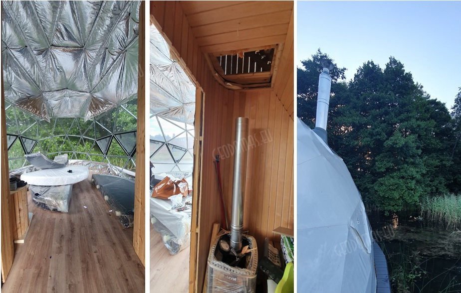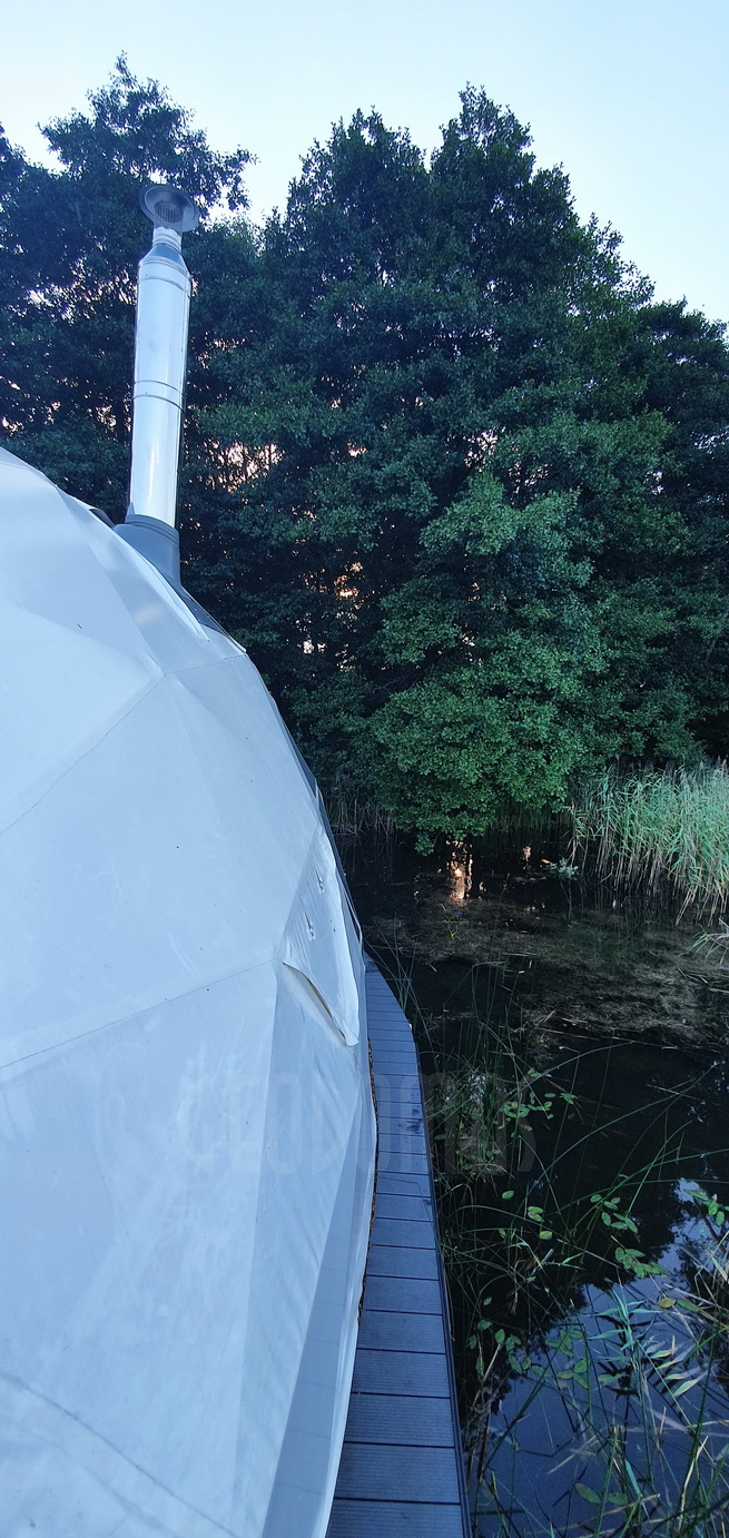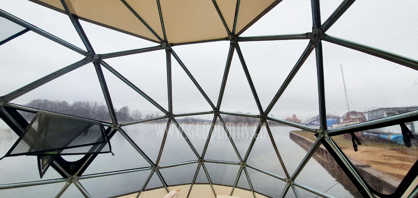 Pro kupolo langą galima stebėti saulėlydžius. Kupolas pritaikytas oro temperatūrai nuo -30 iki +80 laipsnių Celsijaus nes turi THERMIC.PRO terminę membraną. Šio sezono pristatymas, 8 metrų skersmens 50 m2 ploto kupolas – “GLAMPING DOME”.