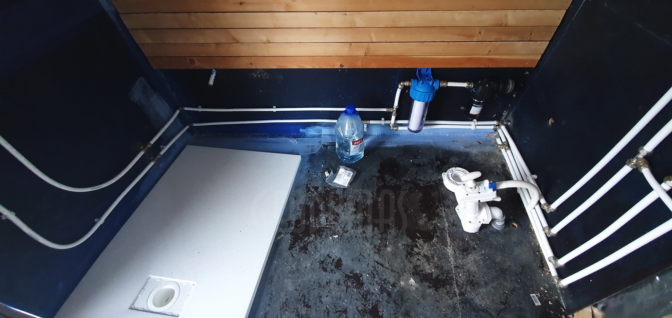 Laive įdiegta moderni 24V elektros sistema, su akumuliatoriais 300Kh, laidų trasomis, LED apšvietimu, rozetėmis ir net 220V inventoriumi. Tylusis 2Kw generatorius veikia tyliai (apie 52 dB), todėl netrikdo ramybės. Dujų sistema su katilu, radiatoriais, boileriu užtikrina šildymą ir karšto vandens tiekimą, todėl galima naudoti tiek SPA zonoje, tiek kasdieniams poreikiams.