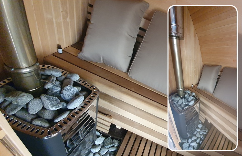 Kupole įrengta pirtis, su visa apdaila ir įranga, įskaitant katilą, dūmtraukį ir izoliaciją. Taip pat yra dušo ir WC kabina su bioklozetu, dušo zona, kriaukle bei apdailos sprendimais. Erdvus loftas, pagamintas iš aliuminio konstrukcijos ir jūrinės faneros, suteikia daugiau vietos poilsiui ar papildomoms miegojimo vietoms.