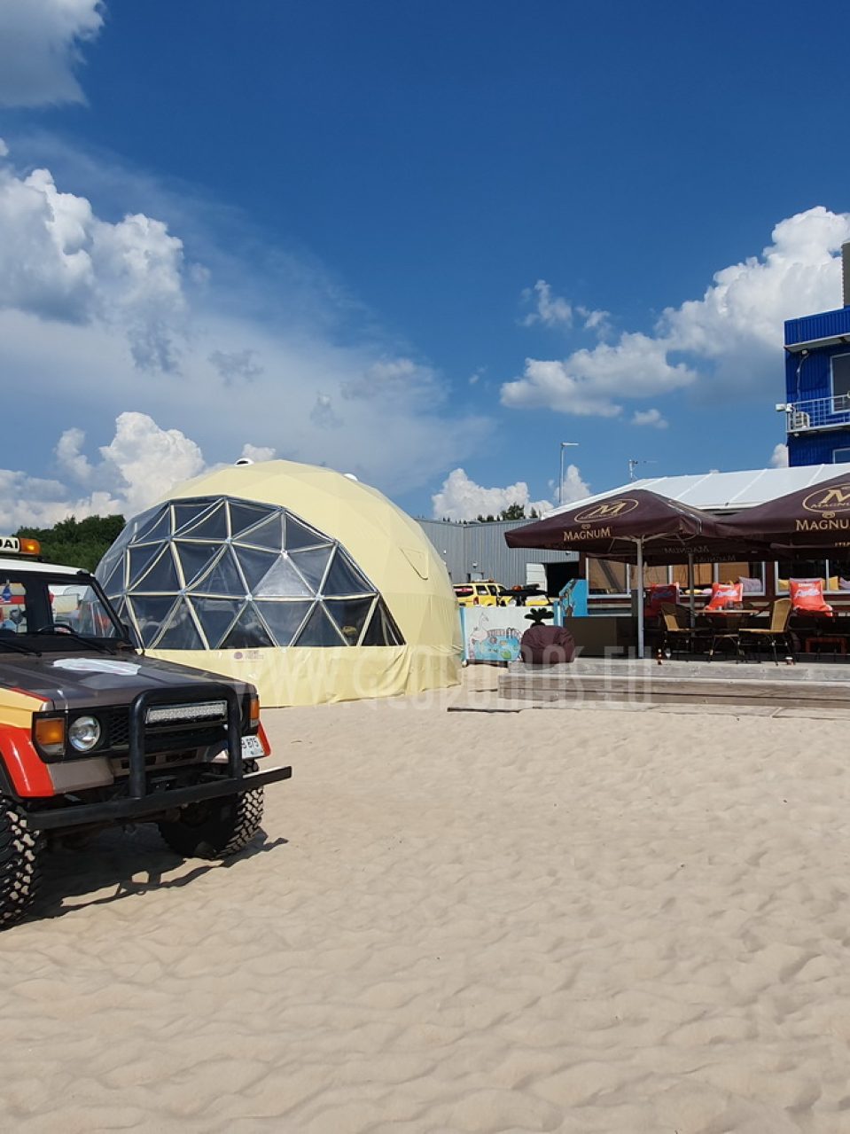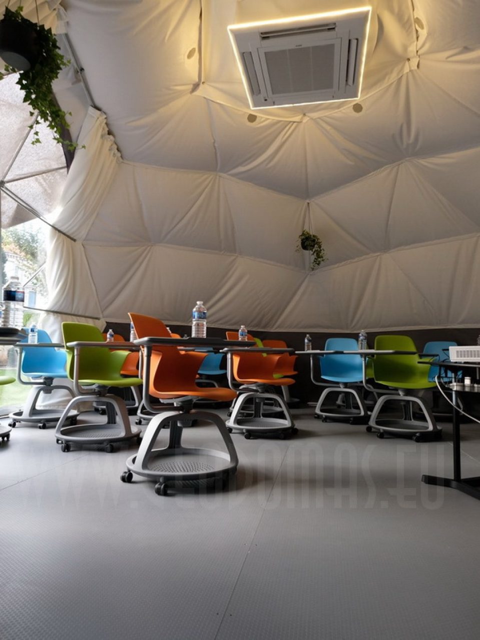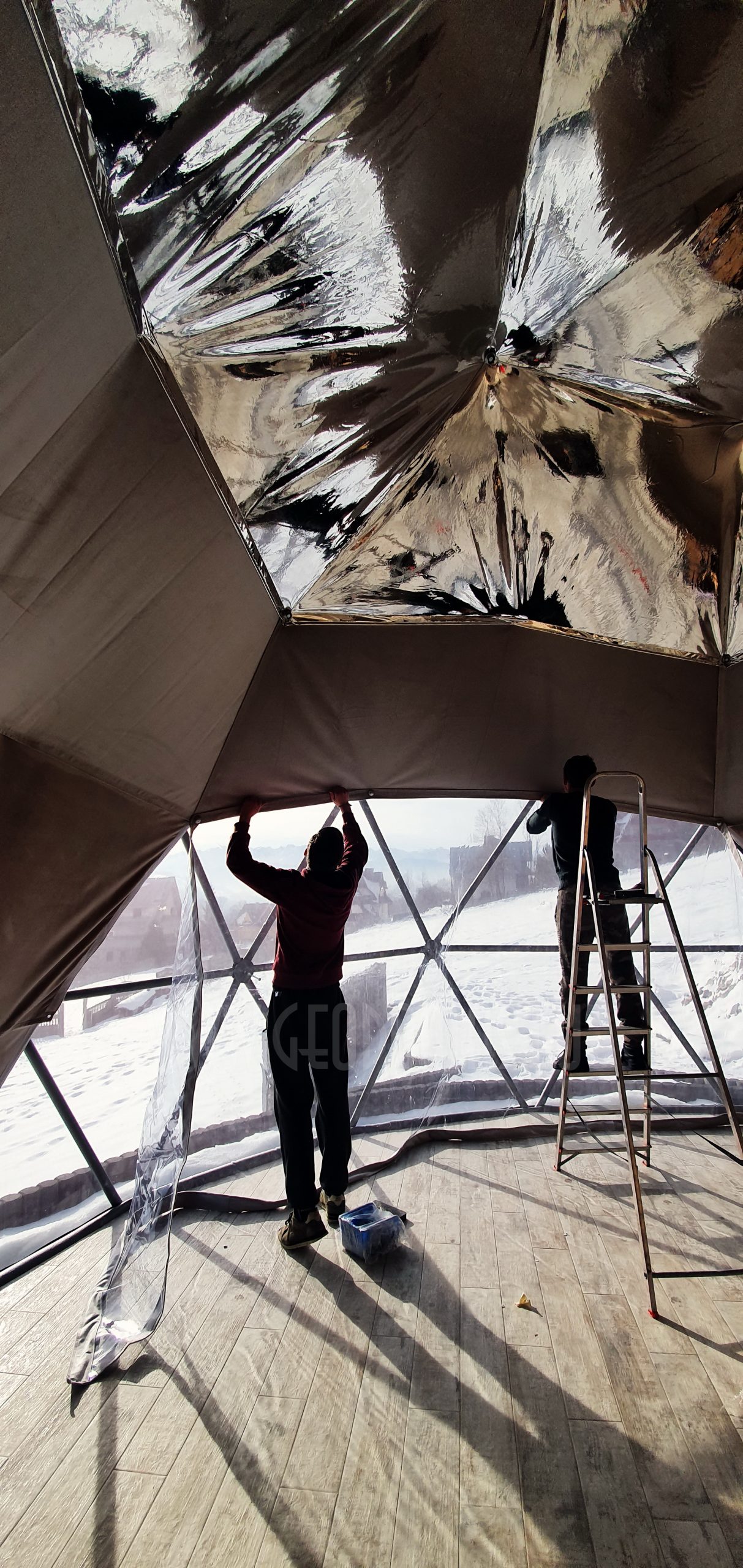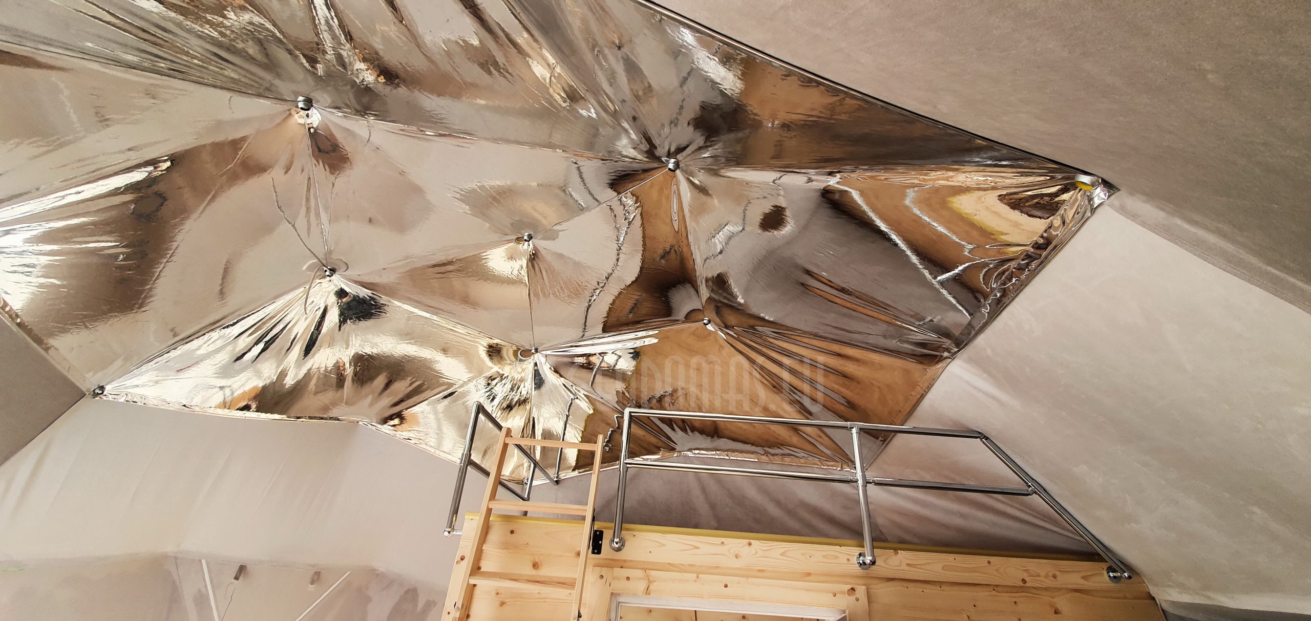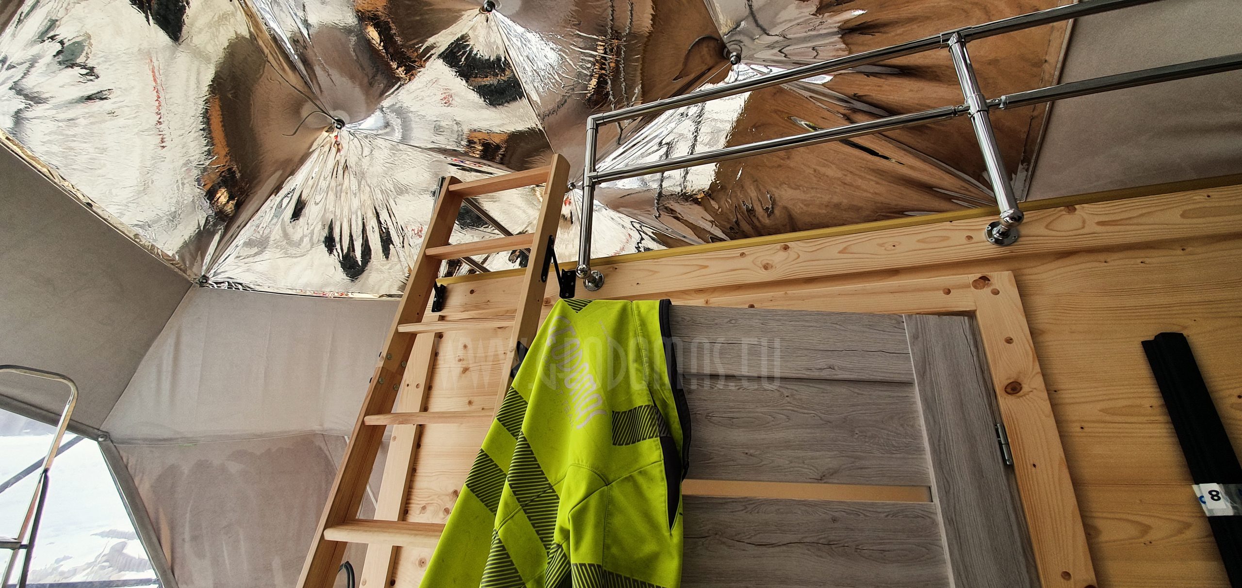 Pro kupolo langą galima stebėti saulėlydžius. Kupolas pritaikytas oro temperatūrai nuo -30 iki +80 laipsnių Celsijaus nes turi THERMIC.PRO terminę membraną. Šio sezono pristatymas, 8 metrų skersmens 50 m2 ploto kupolas – “GLAMPING DOME”.