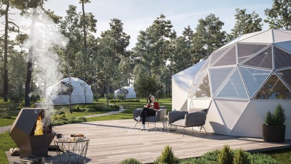🌐 Modelis: Ø6,7m Glamping kupolas x 4 kompl.