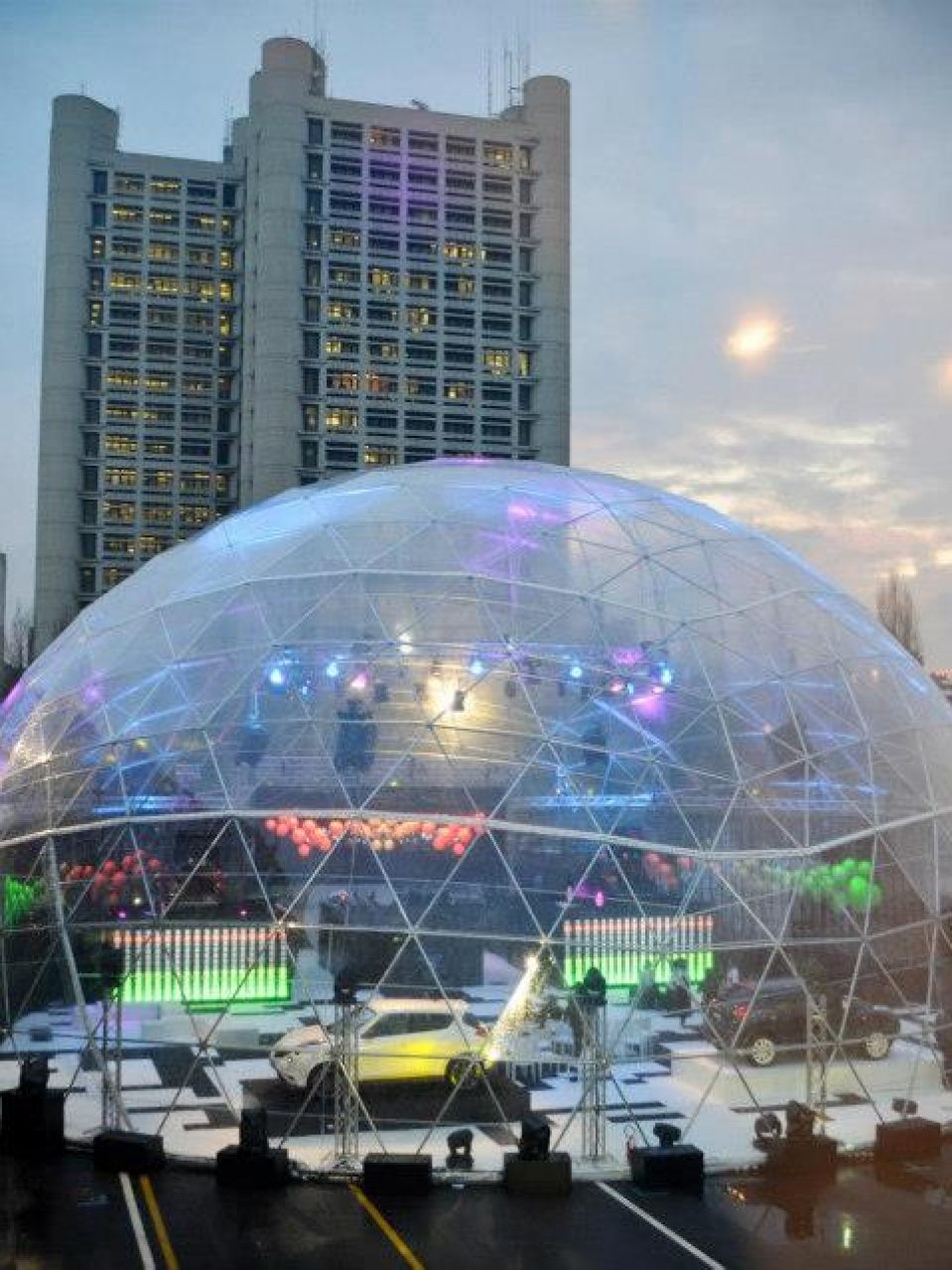 Naujo Nissan modelio Juke pristatymui suprojektuotas ir pagamintas didžiūlis kupolas-paviljonas.