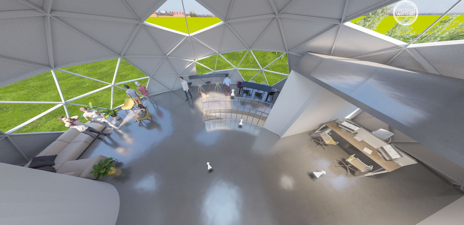 Kupolo viduje galima įgyvendinti autentiškus interjero sprendimus – nuo atvirų erdvių iki uždarų zonų, kuriose susipina funkcionalumas ir estetika. Šviesos pralaidumas ir aukštos lubos kuria erdvės pojūtį ir įkvepia darbuotojus.