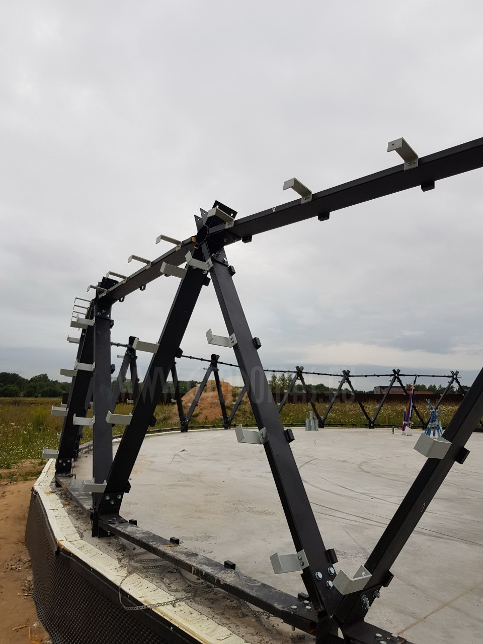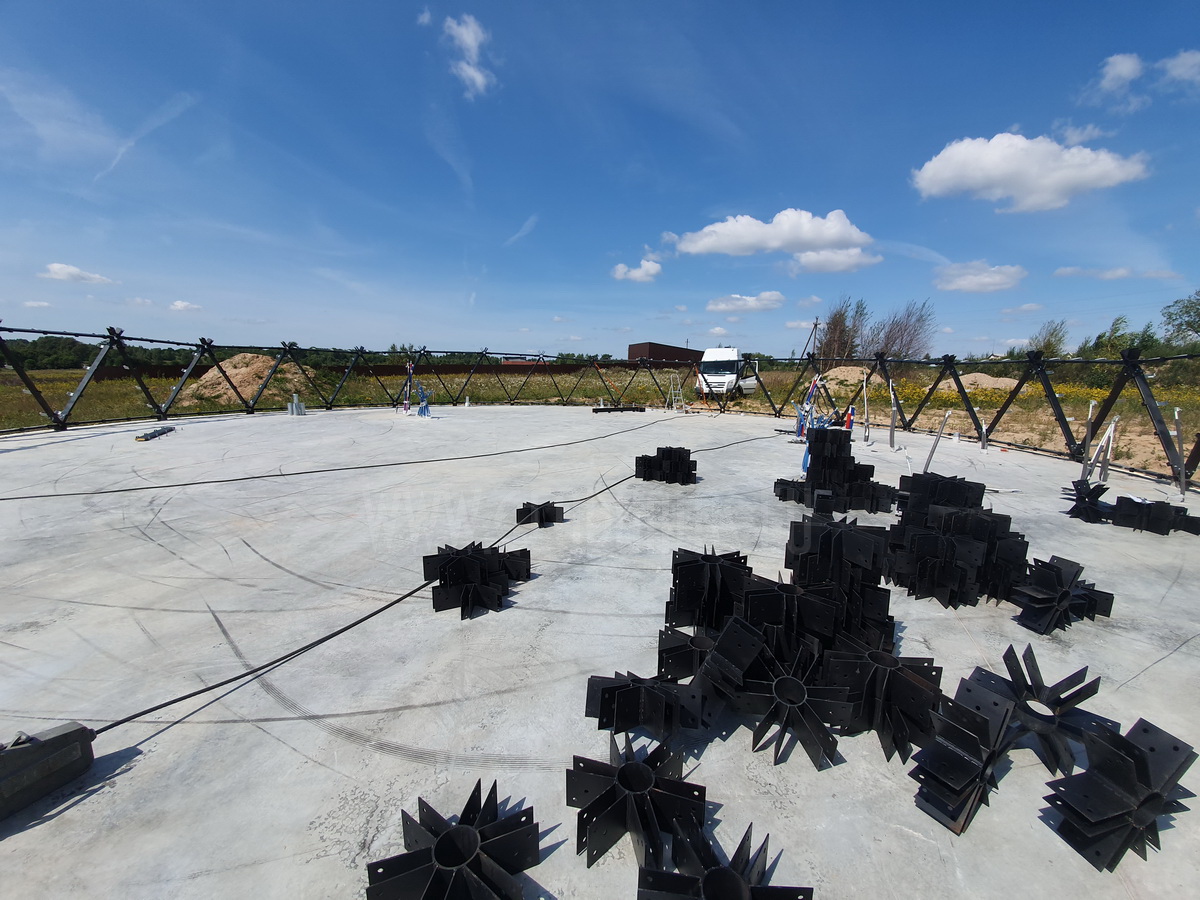 🏗️ Struktūra: 360 panelių ir 555 konstrukcijos elementų, plienas, poliuretanas, aliuminis, stiklas