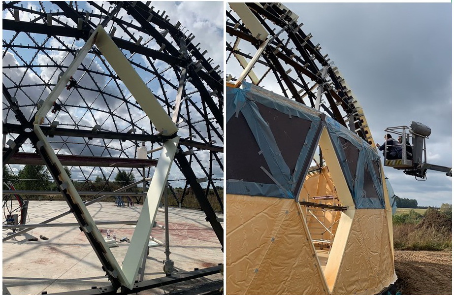 Kupolas sudarytas iš 360 panelių ir 555 konstrukcijos elementų, kurie sukuria tvirtą ir atsparų struktūrinį karkasą. Pagrindinės medžiagos – plienas, poliuretanas, aliuminis, stiklas bei kitos standartinės statybos medžiagos, kurios užtikrina ilgaamžiškumą, saugumą ir komfortą.