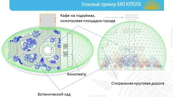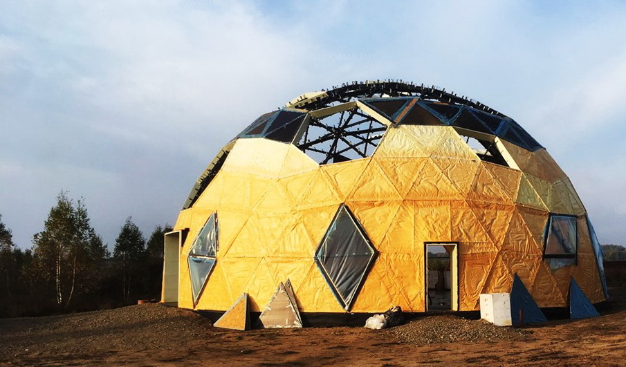Ekologiškas namas yra pagamintas iš medžiagų, tokių kaip aliuminis, stiklas, metalas, medis. 7,5 m aukščio kupolas uždengia visą namą, kurio skersmuo yra 15 metrų.