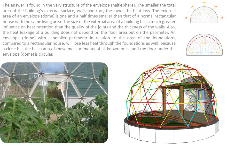 Geodezinio kupolo metodas leidžia sukurti lengvą, gerai apsaugotą ir labai stabilią erdvę. Pagrindinis geodezinių kupolų privalumas yra tolygus įtempių pasiskirstymas visuose rėmo mazguose. „Glamping Domes“ nereikia jokių kolonų, apkrovos sienų ar stulpelių, kad klientai galėtų naudotis maksimaliu turimu plotu. Naudojant plieninius konstrukcinius elementus, struktūra tampa tvari atsižvelgiant į oro veiksnius ir apkrovas.