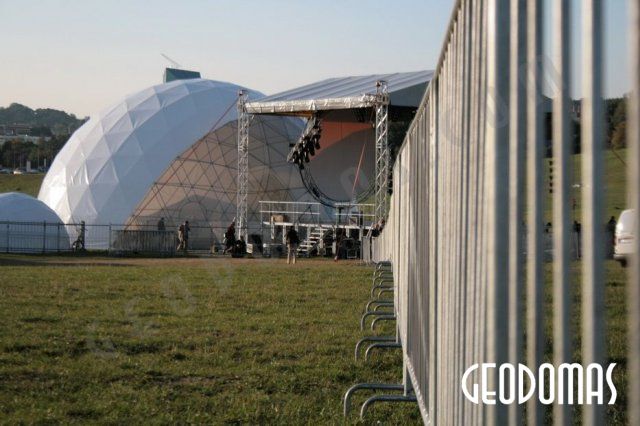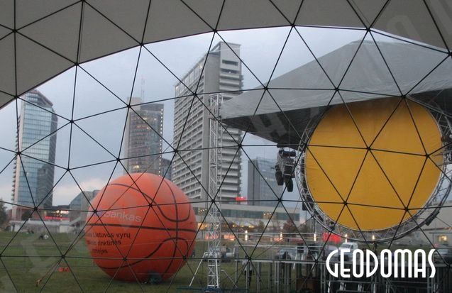 Metalinė, cinkuota sferinės formos konstrukcija | Kupolo formos paviljono rėmas pagamintas iš cinkuoto plieno, vieno varžto jungtys, apatinės jungtys kupolo tvirtinimui.