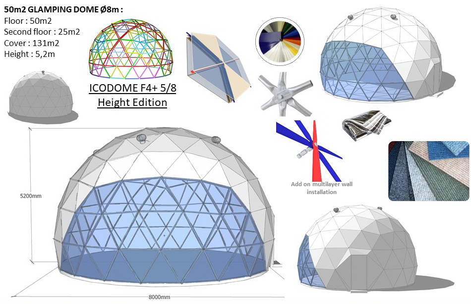 „Glamping Domes“ nereikia jokių kolonų, apkrovos sienų ar stulpelių, kad klientai galėtų naudotis maksimaliu turimu plotu. Naudojant plieninius konstrukcinius elementus, struktūra tampa tvari atsižvelgiant į oro veiksnius ir apkrovas.Kiekviena geodezinė kupolo konstrukcija suprojektuota pagal apkrovos skaičiavimus. Tai savo ruožtu užtikrina saugumą ir ilgaamžiškumą. Mūsų konstrukcijų inžinieriai gali apskaičiuoti maksimalias įrangos apkrovas, atitinkančias regionines normas.