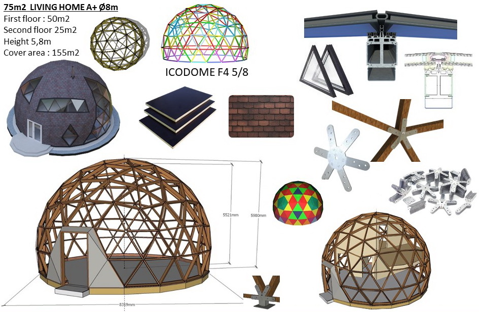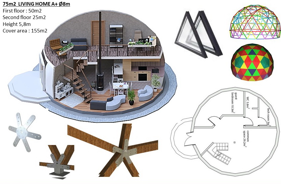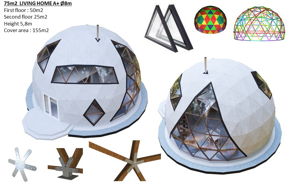 75m2 KUPOLINIS NAMAS Ø8m H5,6m | DALYS