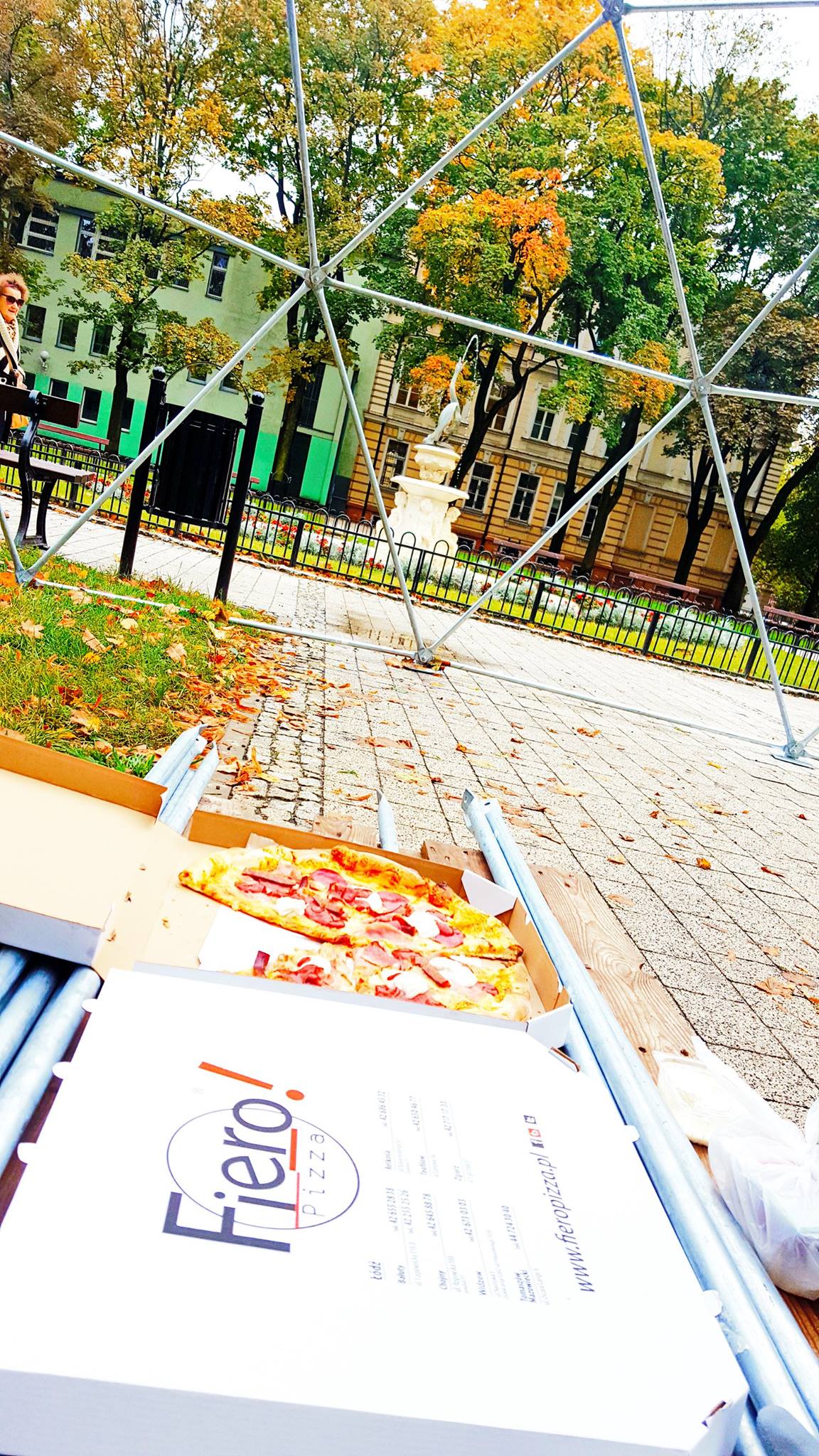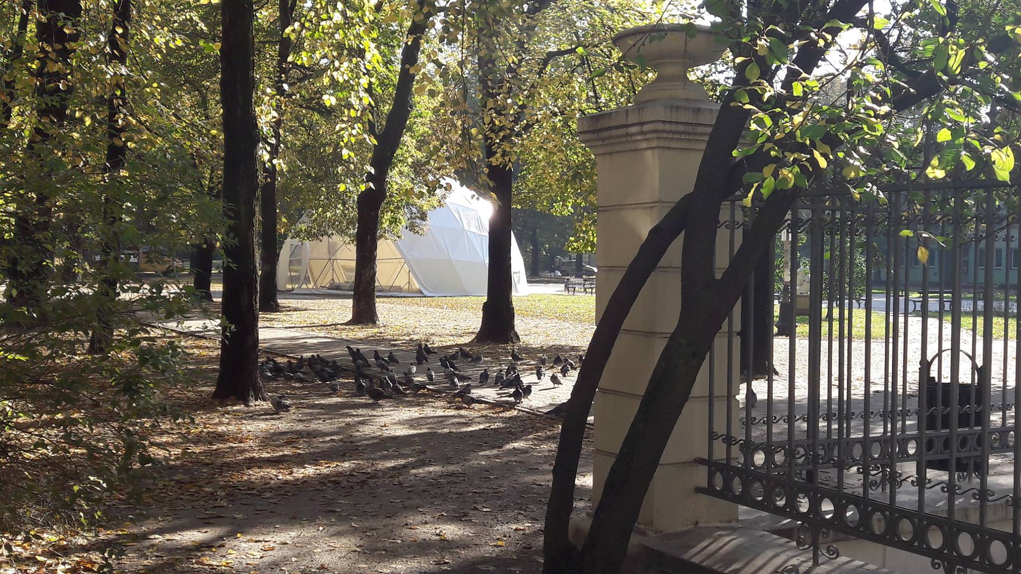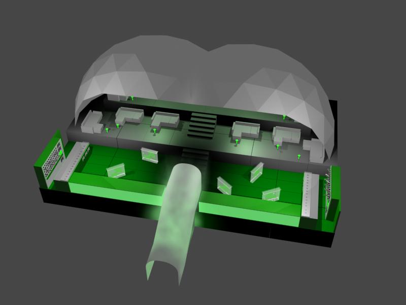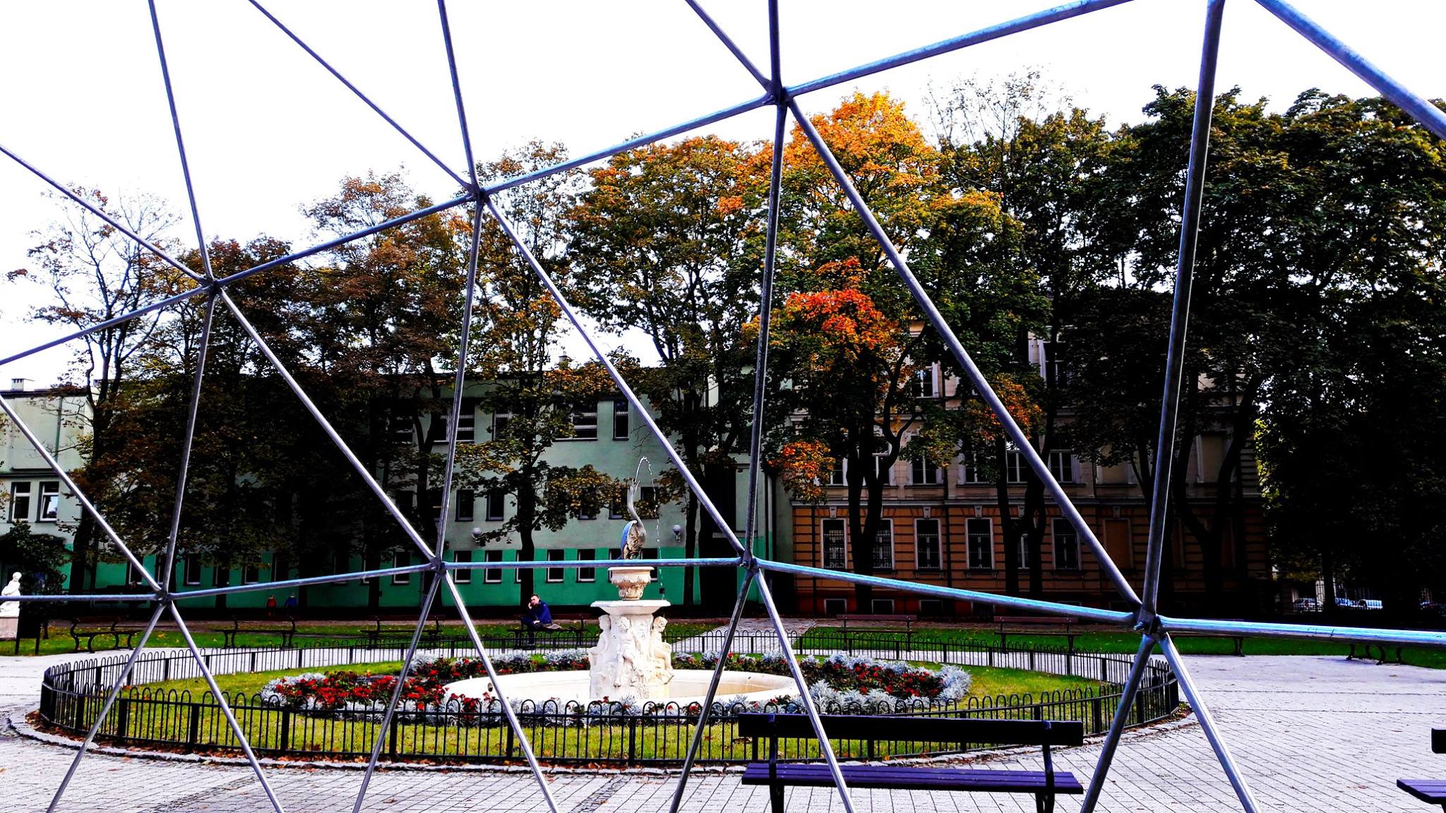 Metalinė, cinkuota sferinės formos konstrukcija | Kupolo formos paviljono rėmas pagamintas iš cinkuoto plieno, vieno varžto jungtys , apatinės jungtys kupolo tvirtinimui.
