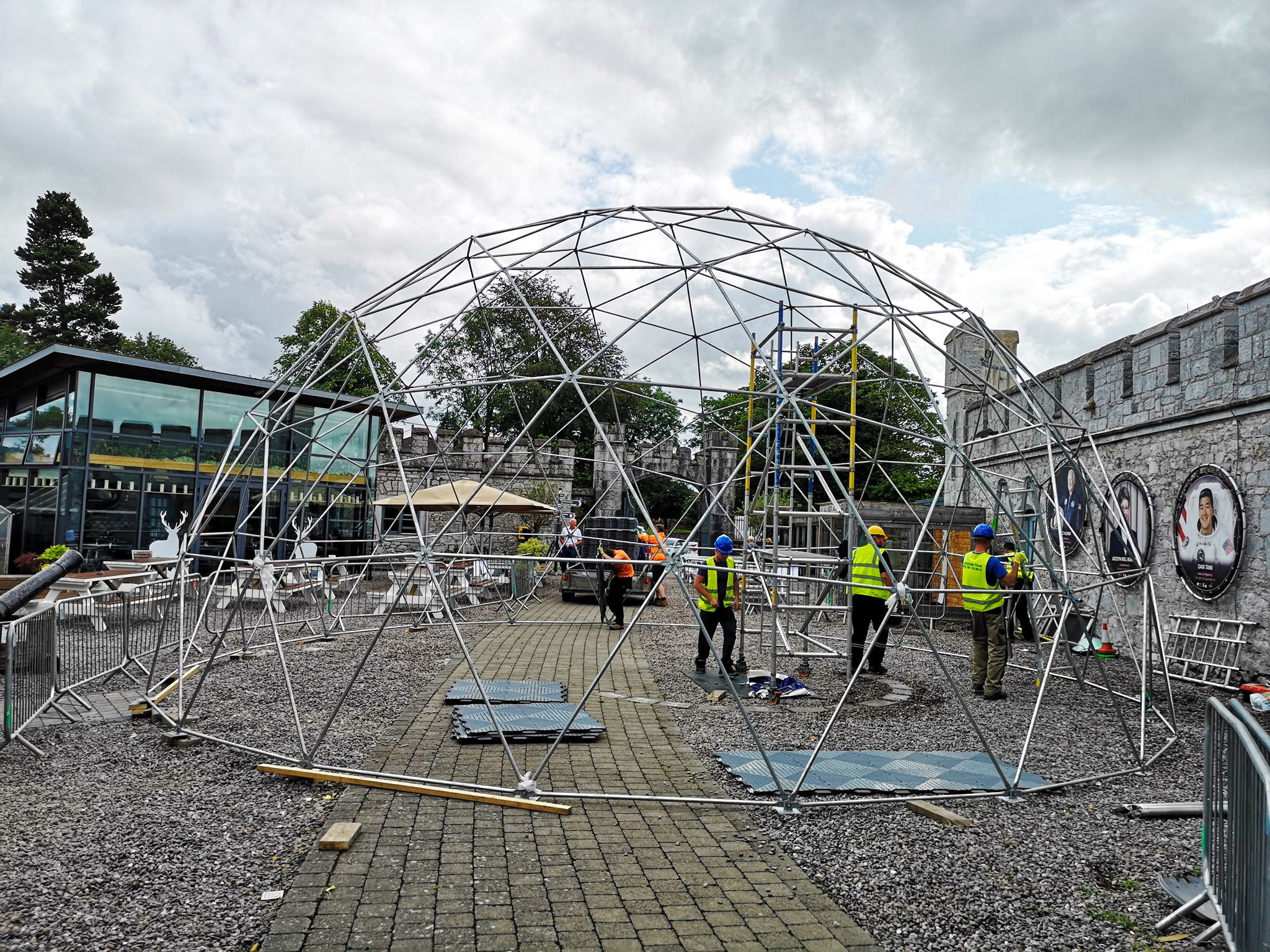 Metalinė, cinkuota sferinės formos konstrukcija | Kupolo formos paviljono rėmas pagamintas iš cinkuoto plieno, vieno varžto jungtys , apatinės jungtys kupolo tvirtinimui.