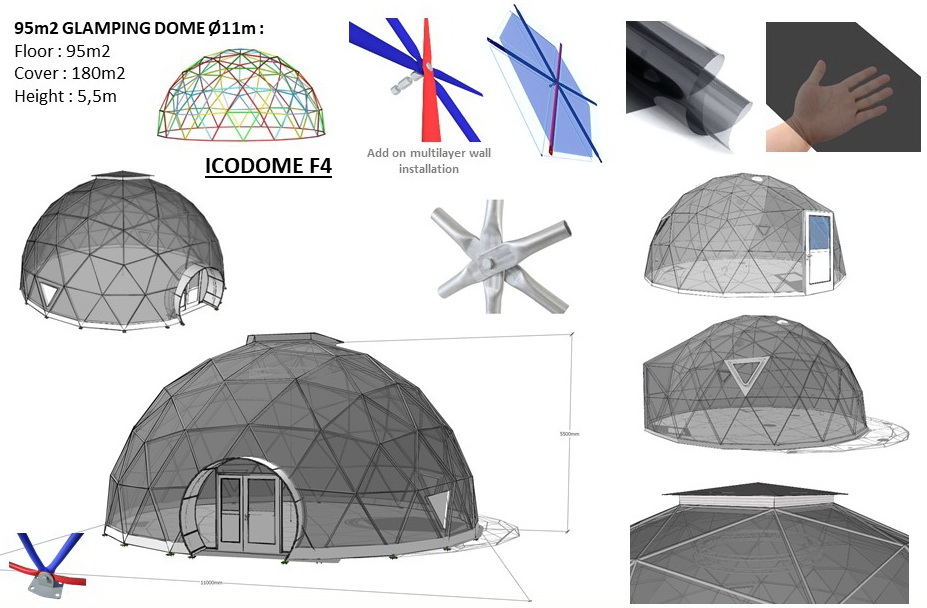 Geodezinio kupolo metodas leidžia sukurti lengvą, gerai apsaugotą ir labai stabilią erdvę. Pagrindinis geodezinių kupolų privalumas yra tolygus įtempių pasiskirstymas visuose rėmo mazguose. „Glamping Domes“ nereikia jokių kolonų, apkrovos sienų ar stulpelių, kad klientai galėtų naudotis maksimaliu turimu plotu. Naudojant plieninius konstrukcinius elementus, struktūra tampa tvari atsižvelgiant į oro veiksnius ir apkrovas.